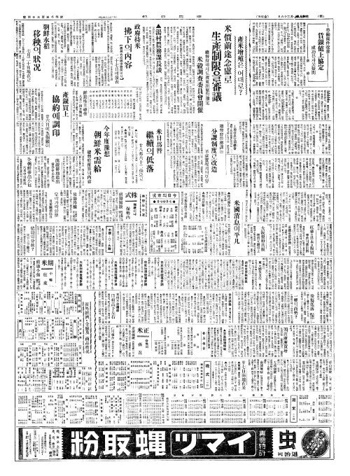 - 產米增殖(산미증식)은 어대로? 米價前途念慮(미가전도염려)로 生產制限(생산제한)을審議(심의)