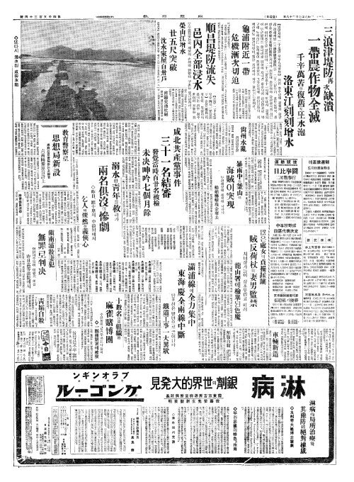 - 三浪津堤防再次缺潰(삼낭진제방재차결궤) 一帶農作物全滅(일대농작물전멸)