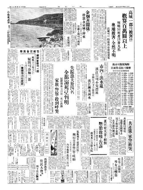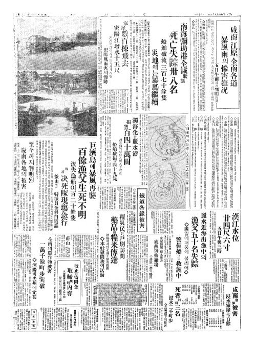 - 咸南(함남)、江原(강원)、全南各道(전남각도) 暴風雨(폭풍우)의慘害槪况(참해개황)