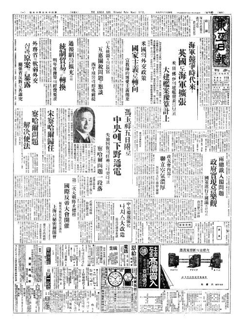 - 馮玉祥五日附(빙옥상오일부)로 中央(중앙)에下野通電(하야통전)