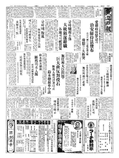 - 愛蘭政府緊急(애난정부긴급)히 治安維持法發布(치안유지법발포)