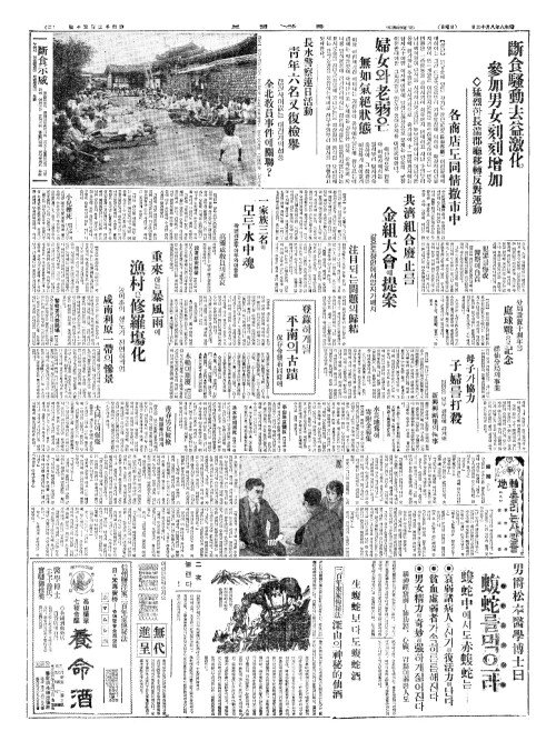 - 斷食騷動去益激化(단식소동거익격화) 參加男女刻刻增加(참가남여각각증가)