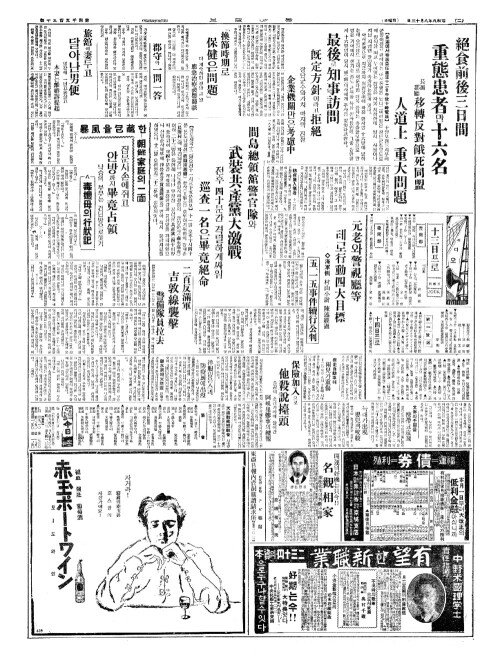 - 絕食前後三日間(절식전후삼일간) 重態患者(중태환자)만十六名(십륙명)