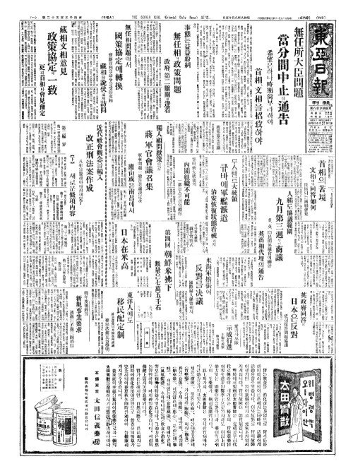 - 事態(사태)는益益紛糾(익익분규) 無任相(무임상)과政策問題(정책문제) 政府(정부)、第二難關(제이난관)에逢着(봉저)