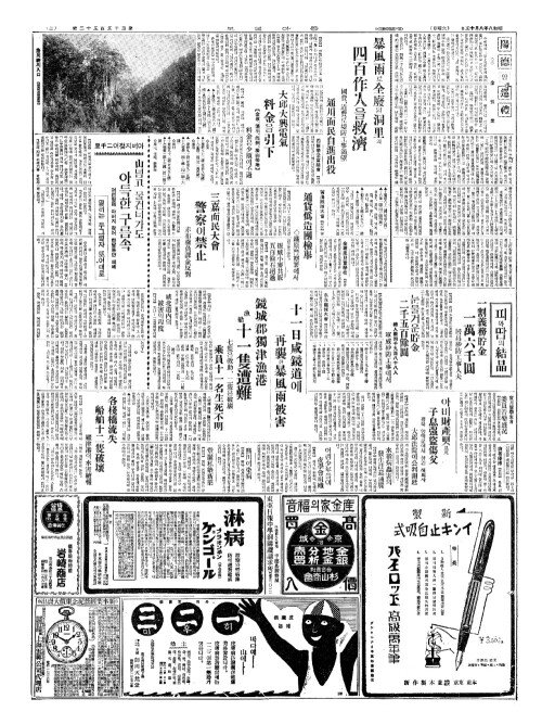 - 暴風雨(폭풍우)로全廢(전폐)된洞里(동리)의 四百作人(사백작인)을救濟(구제)