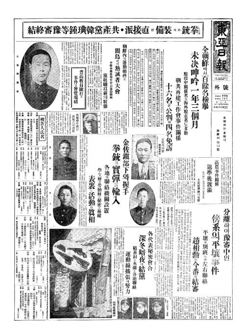 - 拳銃(권총)까지備裝(비장)한直接派(직접파)·共產黨韓琠鍾等豫審終結(공산당한전종등예심종결)