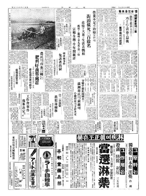 - 營養不足(영양부족)과治療(치요)못받아 街頭橫死三百餘名(가두횡사삼백여명)