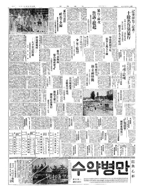 - 記事採集(기사채집)간記者(기자)를 十餘名作黨暴行(십여명작당폭행)