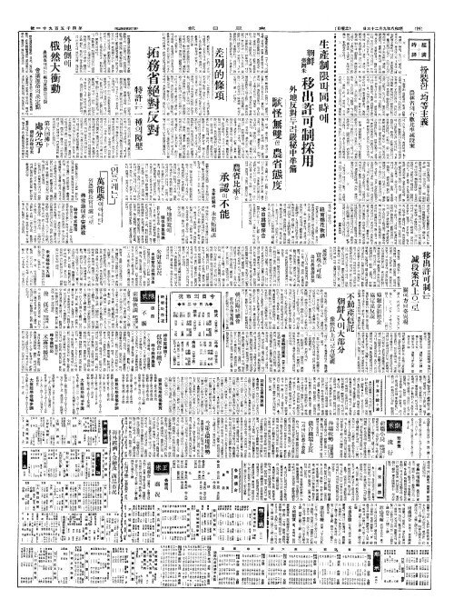 - 生產制限(생산제한)과同時(동시)에 朝鮮臺灣米移出許可制採用(조선대만미이출허가제채용)