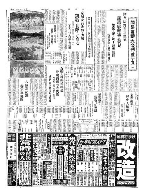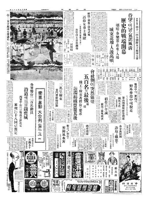 - 本社主催(본사주최) 第十一回全朝鮮女子庭球大會(제십일회전조선여자정구대회) 待望(대망)의 이날에 氣朗風淸(기낭풍청) 歷史的戰端開幕(역사적전단개막)