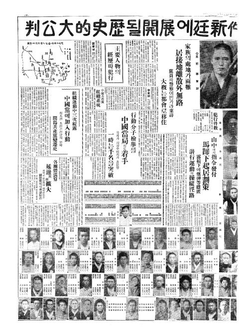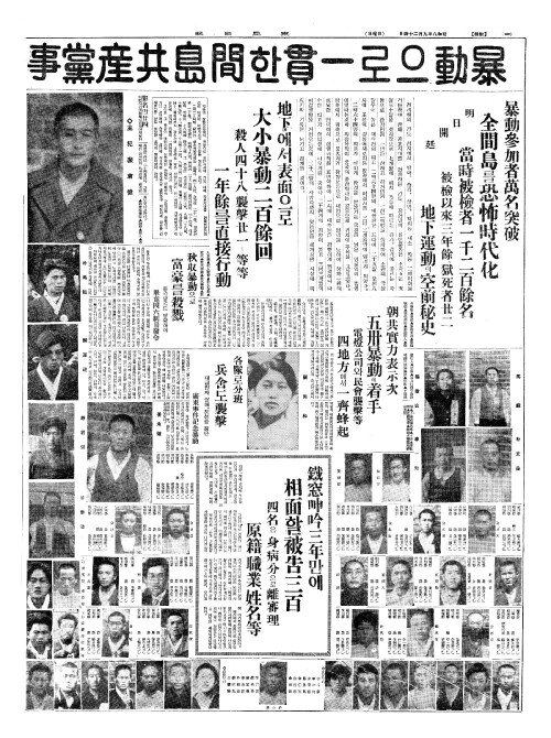 - 暴動(폭동)으로一貫(일관)한間島共産黨事件新廷(간도공산당사건신정)에展開(전개)될歴史的大公判(력사적대공판)