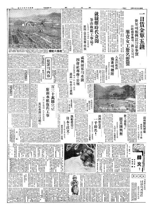 - 一日賃金單五錢(일일임김단오전) 世界(세계)에類例(유예)없을活事實(활사실)