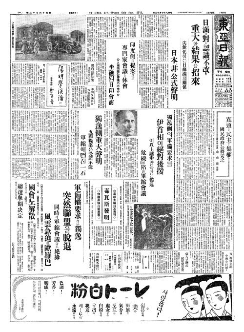 - 軍備權要求(군비권요구)하든獨逸(독일) 突然聯盟(돌연련맹)을脫退(탈퇴)