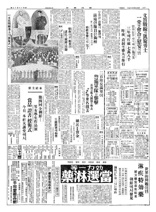 - 文盲戰線(문맹전선)의凱旋勇士(개선용사) 一堂(일당)에會合(회합)한慰安(위안)의밤
