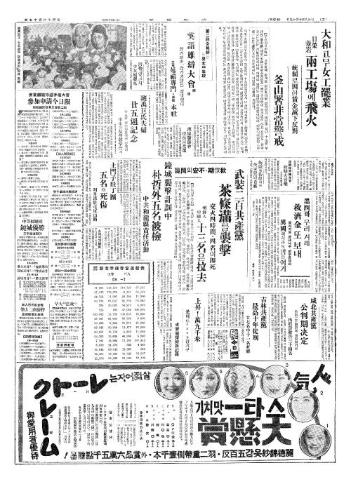 - 大和(대화)고무女工罷業(여공파업) 日榮菱岩兩工塲(일영릉암양공장)에飛火(비화)