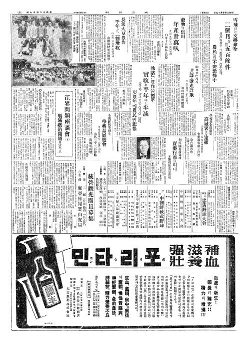 - 千餘石秋收(천여석추수)의蘆田認可(로전인가)로 五山高普(오산고보)에曙光(서광)