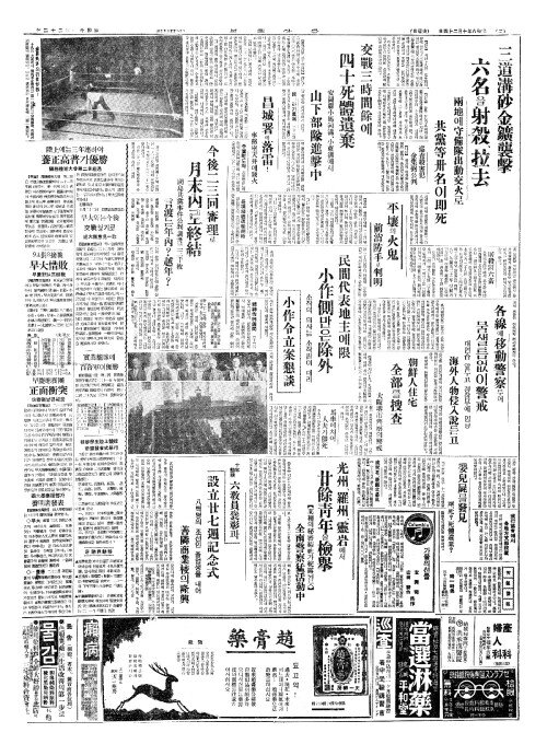 - 三道溝砂金鑛襲擊(삼도구사금광습격) 六名(륙명)을射殺(사살)、拉去(랍거)
