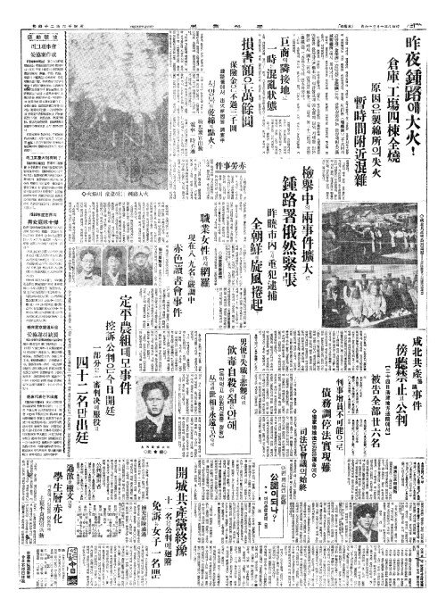 - 昨夜鍾路(작야종로)에大火(대화)!倉庫(창고)、工塲四棟全燒(공장사동전소)