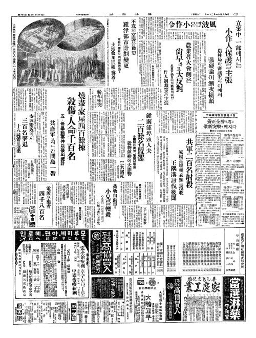 - 風波(풍파)많은小作令(소작영) 立案中(립안중)、一部(일부)에서는 小作人保護(소작인보호)를主張(주장)
