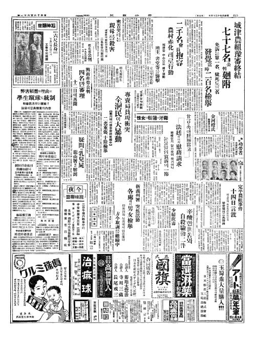 - 城津農組豫審終結(성진농조예심종결) 七十七名公判廻附(칠십칠명공판회부)