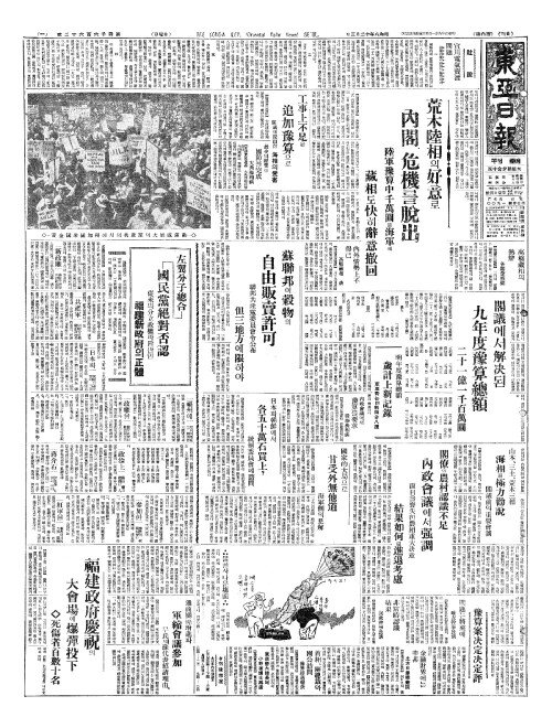 - 福建政府慶祝(복건정부경축)의 大會場(대회장)에爆彈投下(폭탄투하)