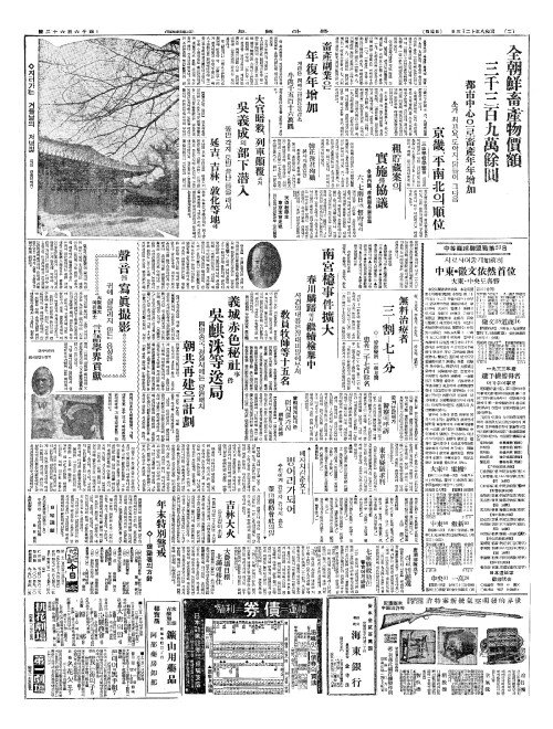 - 全朝鮮畜產物價額(전조선축산물가액) 三千三百九萬餘圓(삼천삼백구만여원)