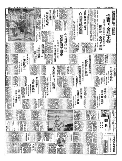 - 連日繼續(연일계속)되는怪候(괴후) 漁獲(어획)이全然不振(전연부진)