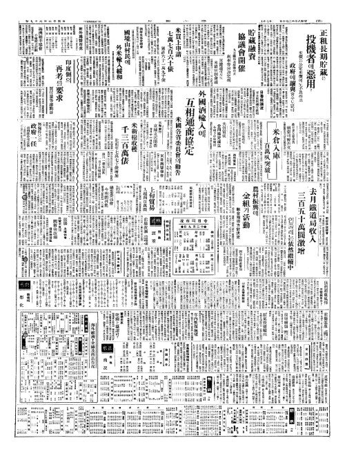 - 米新棉收穫(미신면수확) 千三百萬俵(천삼백만표)