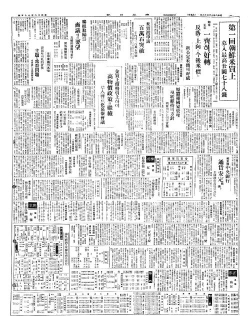 - 第一回朝鮮米買上(제일회조선미매상) 募入最高廿圓七十八錢(모입최고입원칠십팔전)