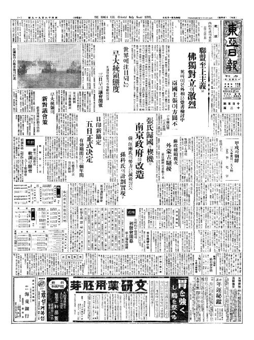 - 張氏歸國(장씨귀국)을楔機(설기)로 南京政府(남경정부)를改造(개조)