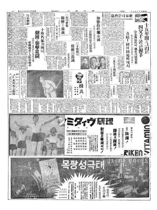 - 新春(신춘)다운消息(소식) 十五年間(십오년간)을그리든 四父子(사부자)가굳은握手(악수)