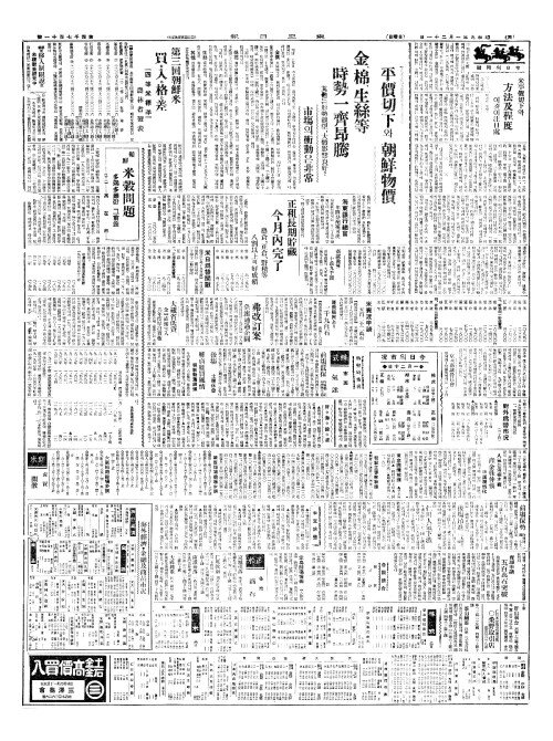 - 平價切下(평가절하)와 朝鮮物價(조선물가) 金(금)、棉(면)、生絲等(생사등) 時勢一齊昂騰(시세일제앙등)