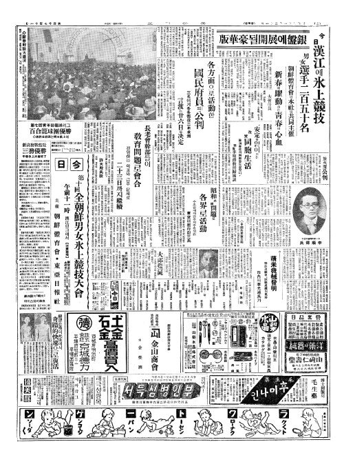 - 銀盤(은반)에展開(전개)될豪華版(호화판) 今日漢江(금일한강)에氷上竸技(빙상경기) 男女選手二百五十名(남녀선수이백오십명)