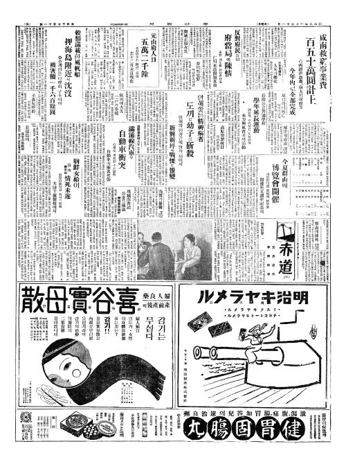 - 市內一年間死亡八千(시내일년간사망팔천) 每日平均廿二名(매일평균입이명)