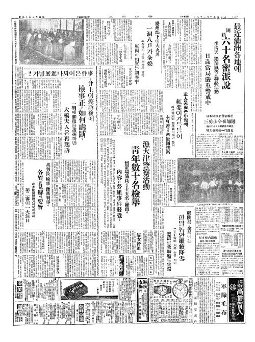- 漁大津警察活動(어대진경찰활동) 靑年數十名檢擧(청연삭십명검거)