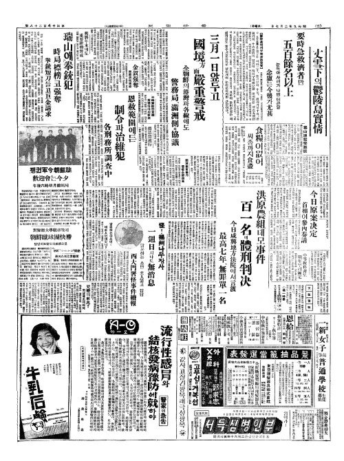 - 三月一日(삼월일일)앞두고 國境方面嚴重警戒(국경방면엄중경계)