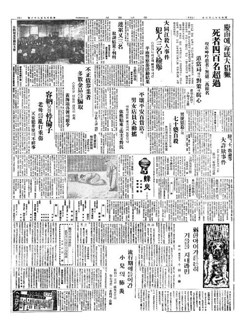 - 慶南(경남)에毒感大猖獗(독감대창궐) 死者四百名超過(사자사백명초과)