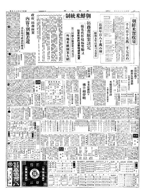 - 朝鮮米統制(조선미통제) 拓務省原案决定(척무성원안결정)