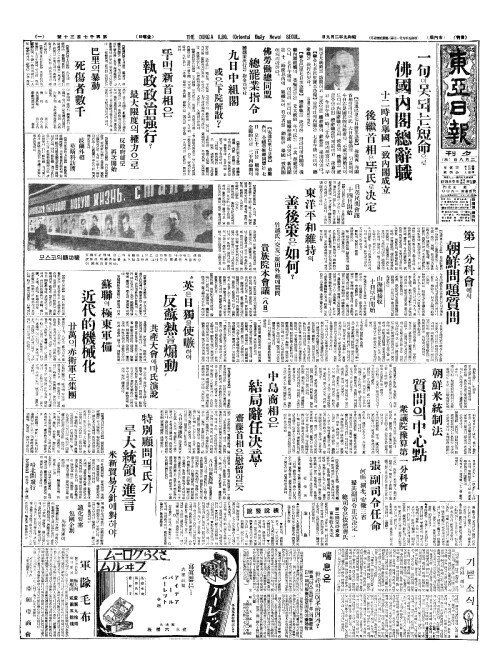 - 一旬(일순)이못되는短命(단명)으로 佛國內閣總辭職(불국내각총사직)