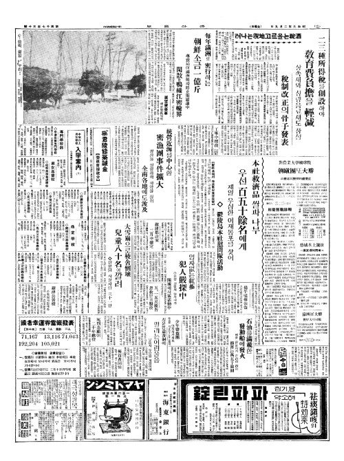 - 二三種所得稅(이삼종소득세)를創設(창설)하야 敎育費負擔(교육비부담)을輕减(경감)