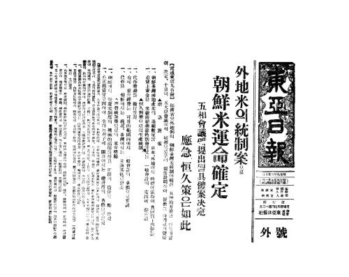 - 非常手段(비상수단)으로도 外地米(외지미)는統制决意(통제결의)