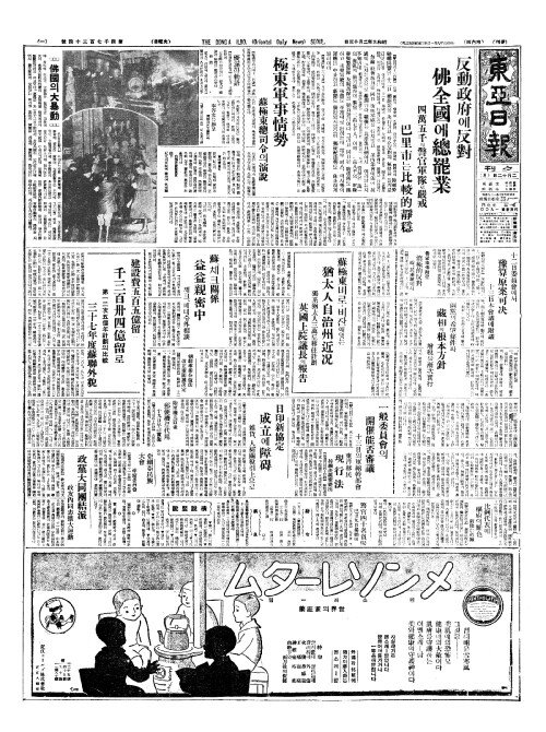 - 反動政府(반동정부)에反對(반대) 佛全國(불전국)에總罷業(총파업)