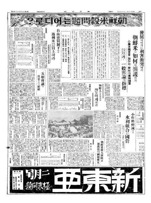 - 農林局(농임국)에 米糓課新設(미곡과신설)