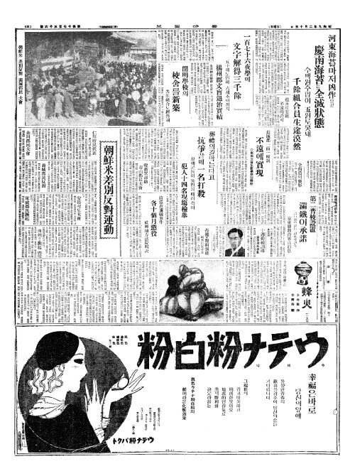 - 仁川期(인천기)????會(회)서 朝鮮米擁護打電(조선미옹호타전)