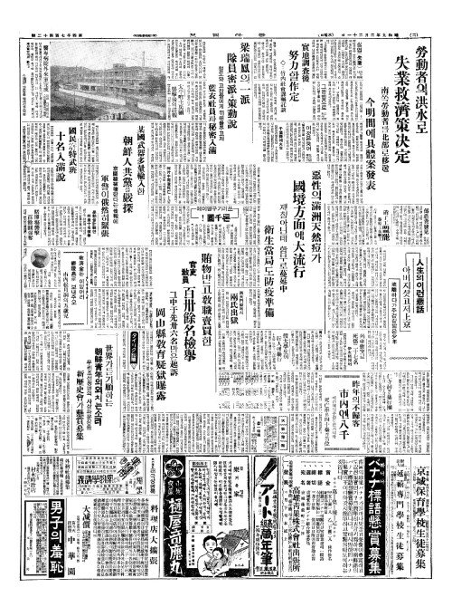 - 勞動者(노동자)의洪水(홍수)로 失業救濟策决定(실업구제책결정)