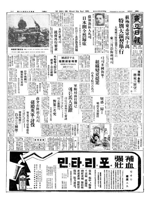 - 蘇極東赤軍四十萬(소극동적군사십만) 特別大演習擧行(특별대연습거행)