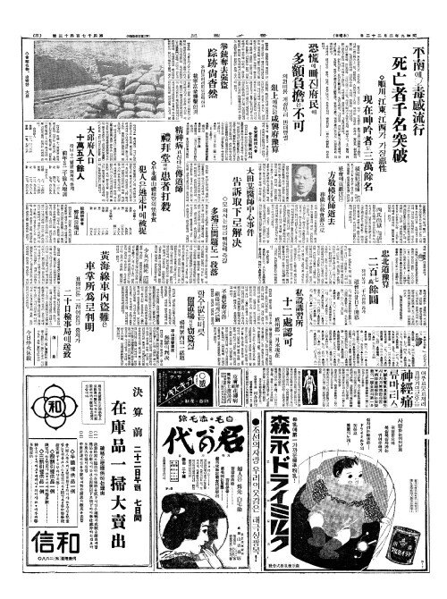 - 平南(평남)에도毒感流行(독감류행) 死亡者千名突破(사망자천명돌파)
