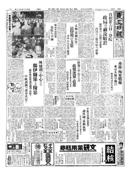 - 首相廿六日(수상입륙일)부터登院(등원) 政局(정국)의前途暗澹(전도암담)