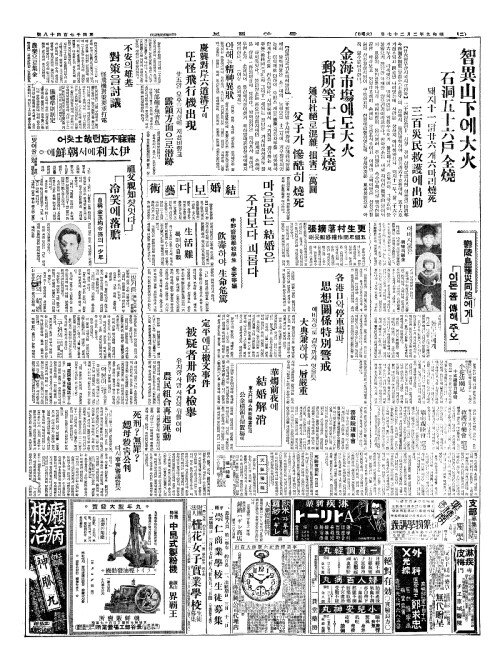 - 金海市塲(금해시장)에도大火(대화) 郵所等十七戶全燒(우소등십칠호전소)