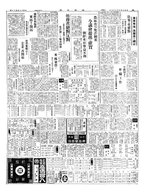 - 農林省(농림성)의免許制案(면허제안) 今議會提出(금의회제출)은確實(확실)